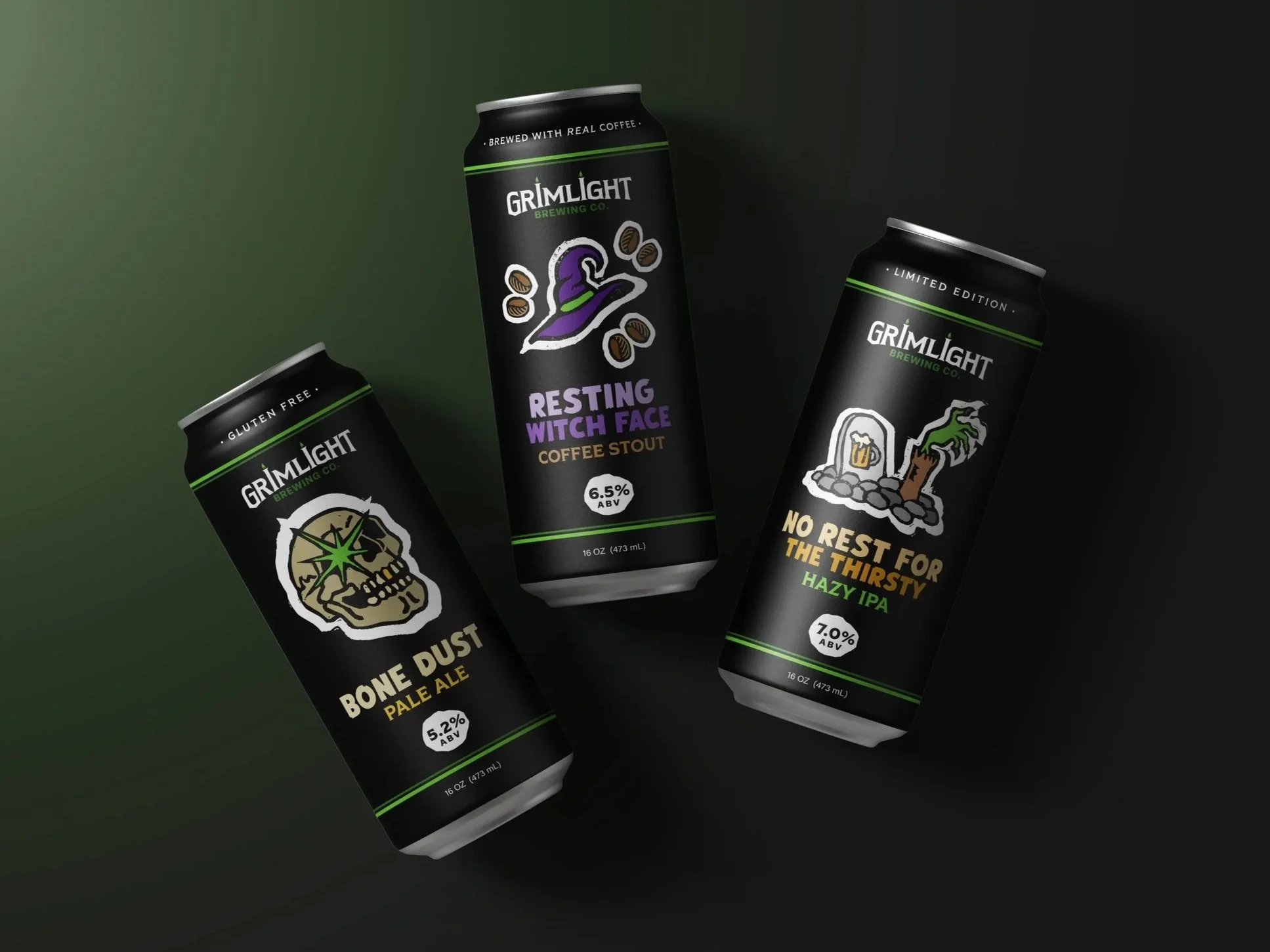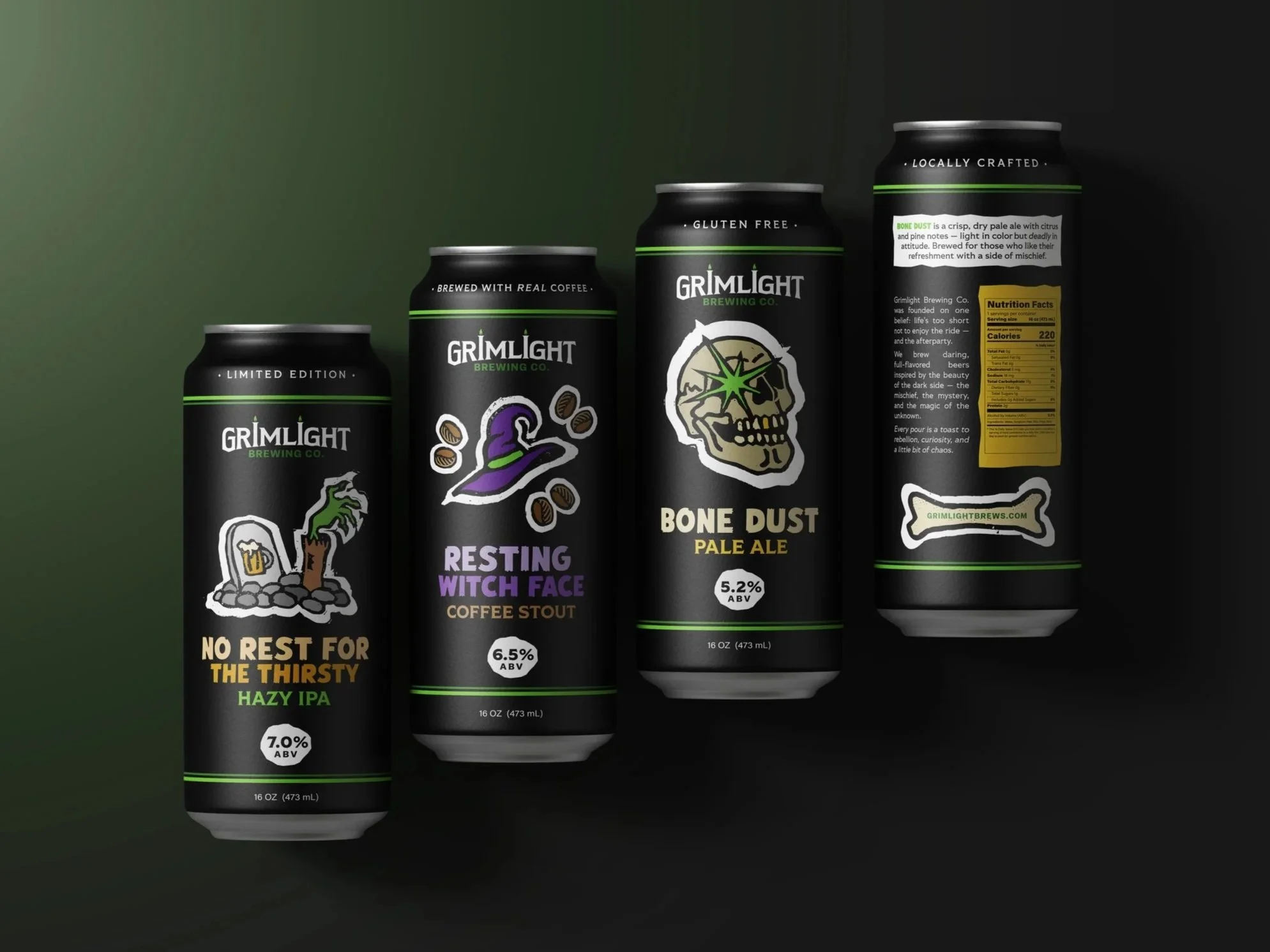 My goal for this design was to mix dark humor with bold, punky visuals and challenge the typical craft beer look. I used playful, spooky imagery and witty language to make each can feel like its own piece of art for beer drinkers who are into creativity, individuality, and a bit of a rebellious edge.